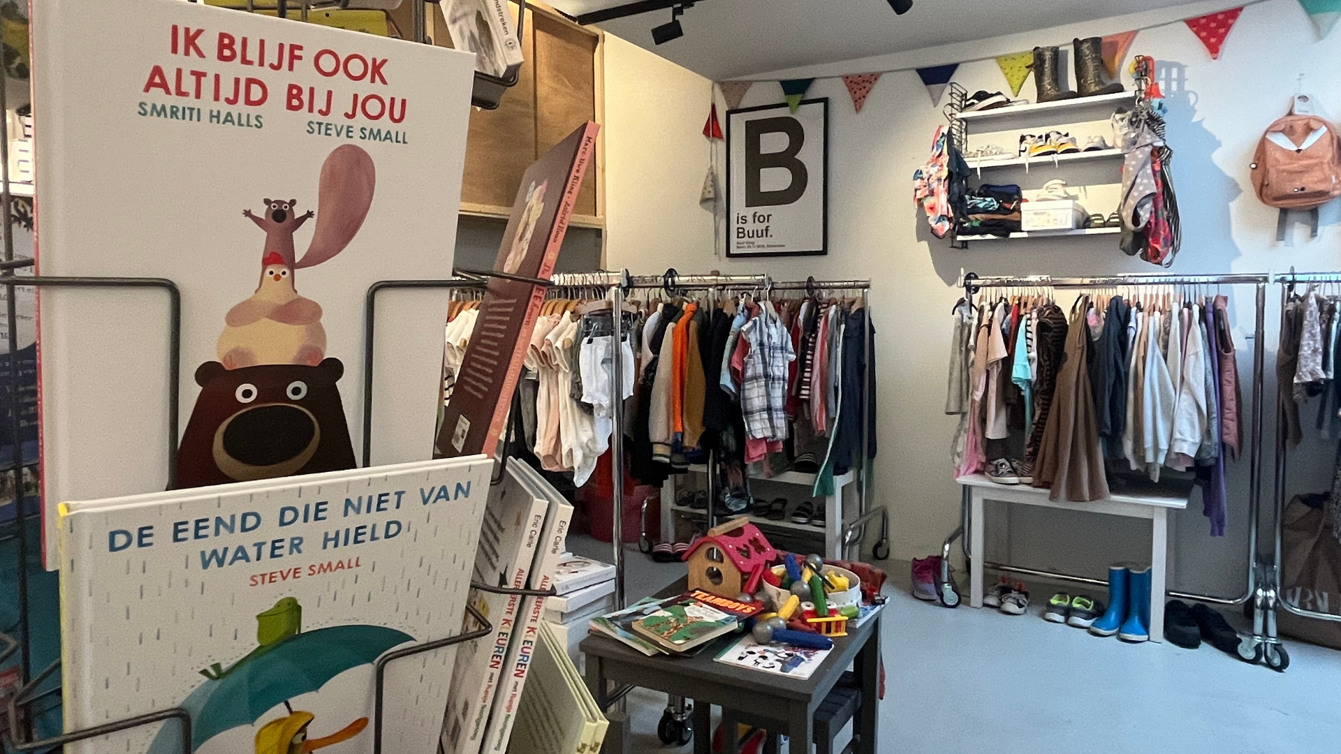 Marjolijn: "The second-hand clothing is brought in by people from the neighborhood, so we don’t have to source that. We buy baby clothes ourselves, as well as most of the other products—like toys, books, and cards—either at trade fairs or online. I like to see and feel things in person, but we also order a lot online. Some jewelry is sold on consignment—local makers bring it in, and we sell it for them. But most of what you see here, we’ve selected ourselves."